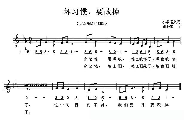 坏习惯,要改掉(五线谱)的简谱歌词