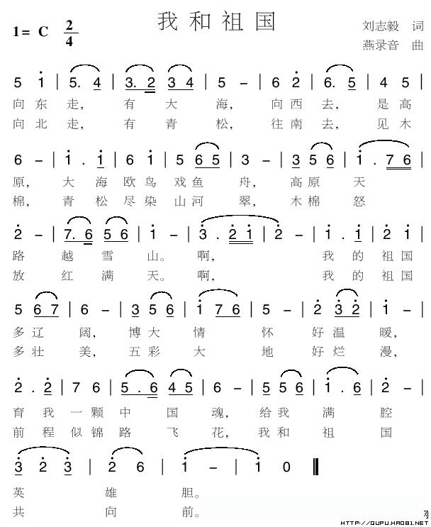 我和祖国(刘志毅词 燕录音曲)的简谱歌词