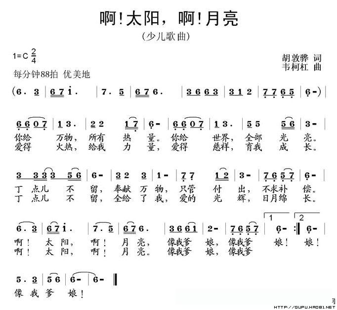 啊!太阳 啊!月亮(胡敦骅词 韦柯杠曲)的简谱歌词