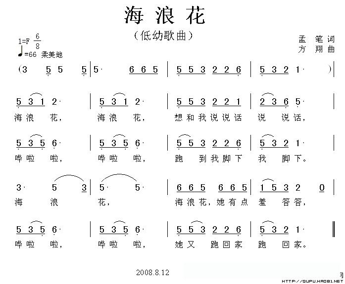 海浪花(孟笔词 方翔曲)的简谱歌词