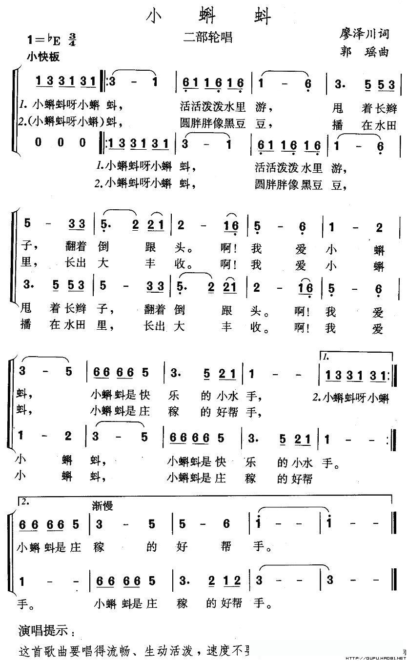 小蝌蚪(二部轮唱)的简谱歌词