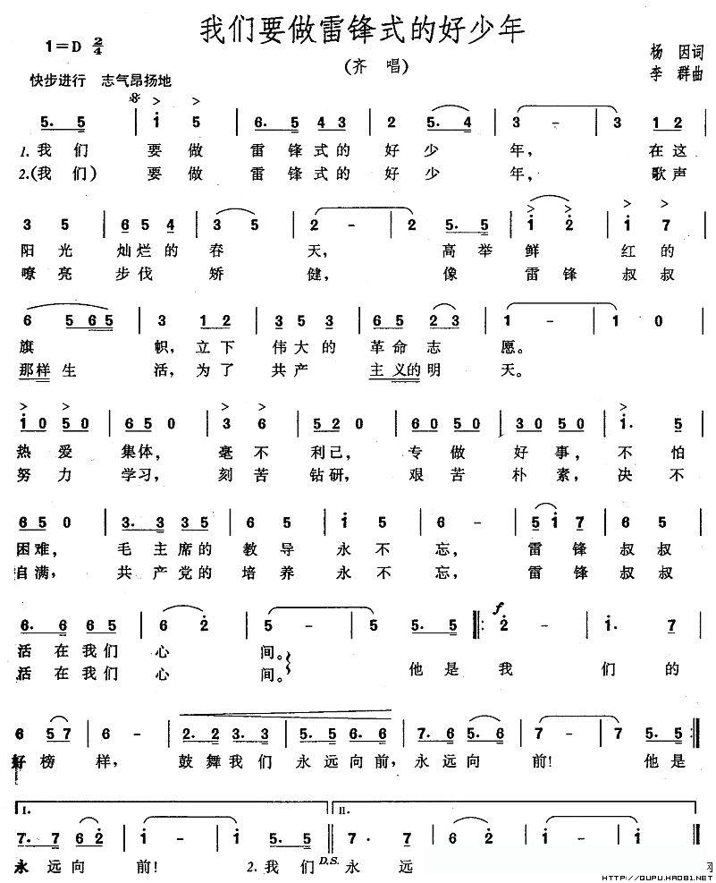 我们要做雷锋式的好少年(齐唱版)的简谱歌词