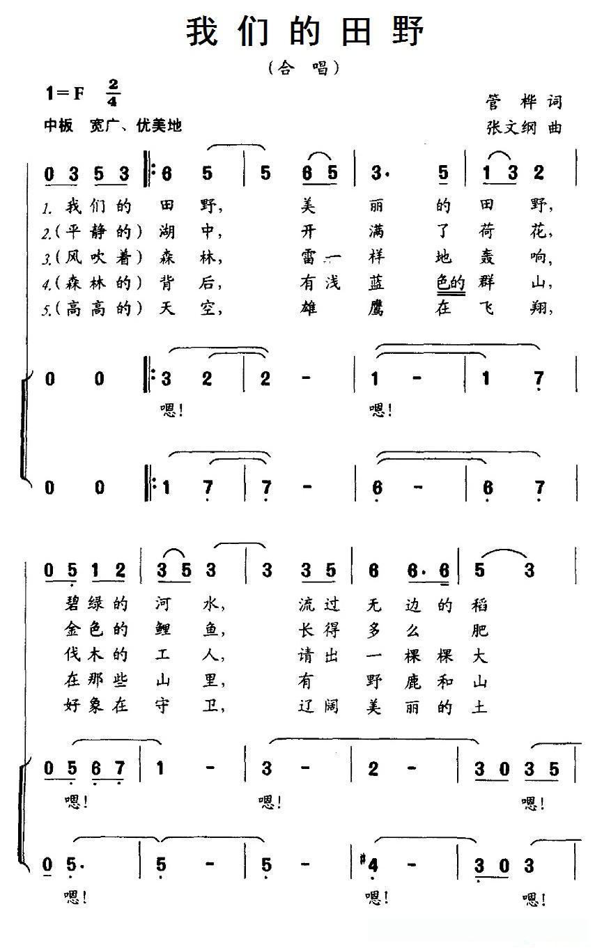 我们的田野(合唱)的简谱歌词我们的田野(合唱)的简谱歌词我们的田野(合唱)的简谱歌词我们的田野(合唱)的简谱歌词我们的田野(合唱)的简谱歌词