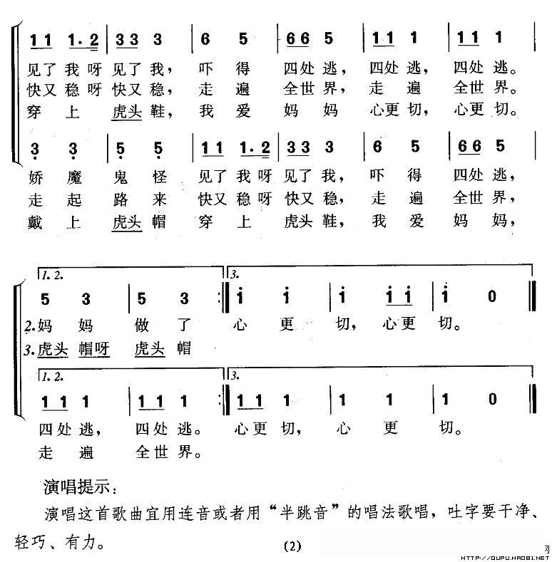 虎头帽,虎头鞋(二部轮唱)的简谱歌词