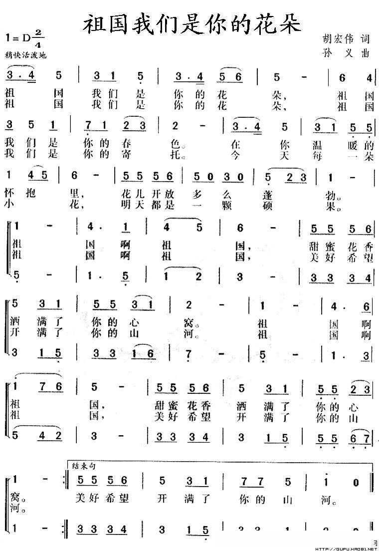 祖国我们是你的花朵(合唱)的简谱歌词
