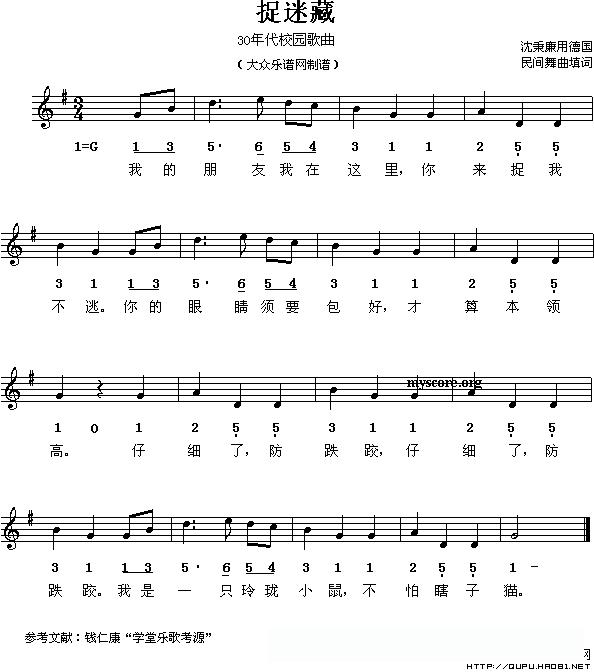 捉迷藏(沈秉廉填词、线的简谱混排版)的简谱歌词
