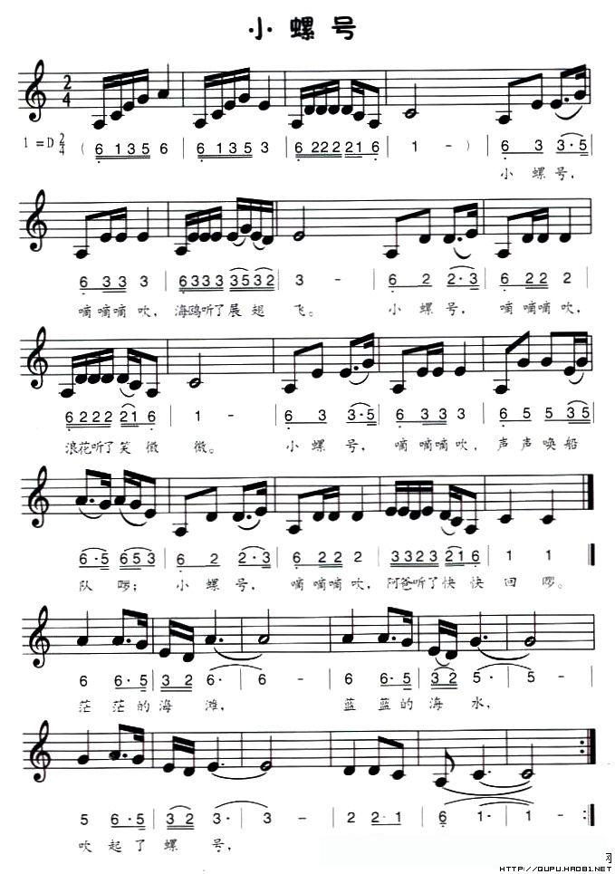 小螺号(线、的简谱混排版)的简谱歌词