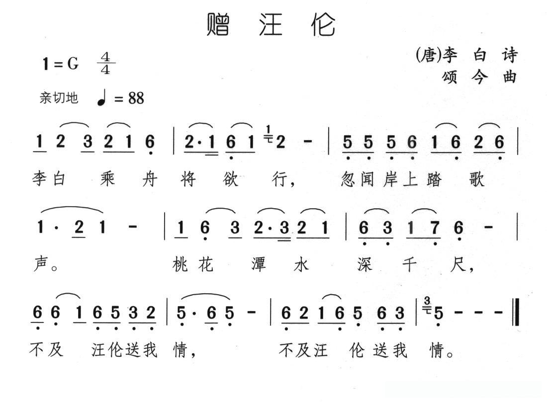 赠汪伦([唐]李白词 颂今曲)的简谱歌词
