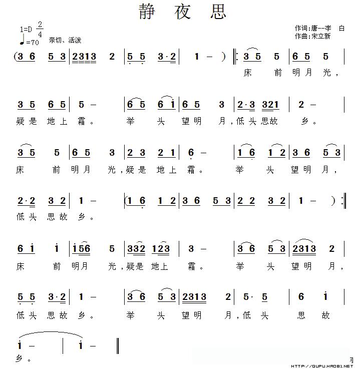 静夜思([唐]李白词 宋立新曲)的简谱歌词