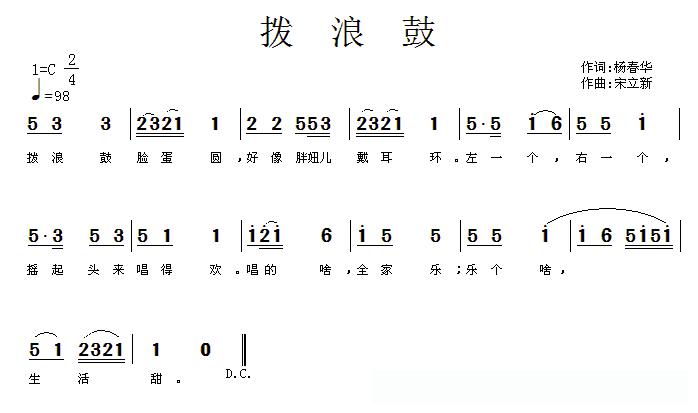 拨浪鼓(杨春华词 宋立新曲)的简谱歌词