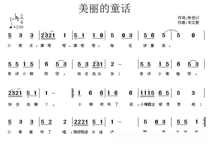 美丽的童话(张俊以词 宋立新曲)的简谱歌词