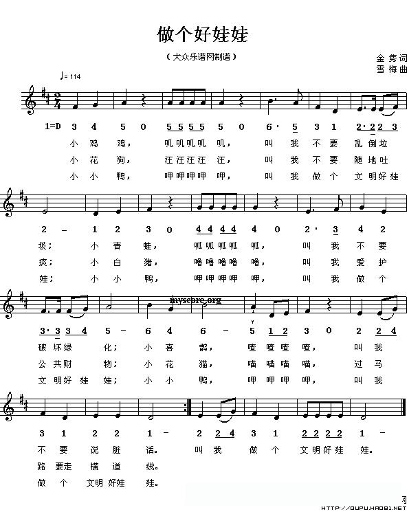 做个好娃娃(五线谱)的简谱歌词