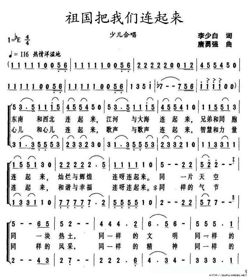 祖国把我们连起来(合唱)的简谱歌词祖国把我们连起来(合唱)的简谱歌词