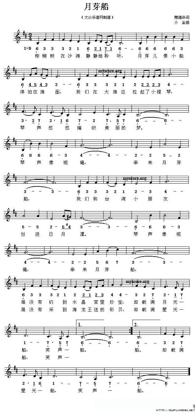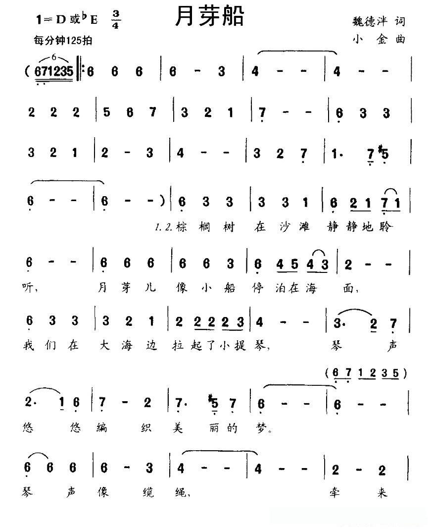 月芽船的简谱歌词月芽船的简谱歌词月芽船的简谱歌词