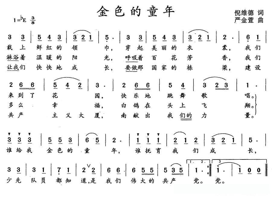 金色的童年(倪维德词 严金萱曲)的简谱歌词
