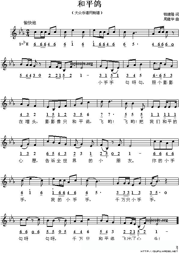 和平鸽(钱建隆词 周继华曲、线的简谱混排版)的简谱歌词