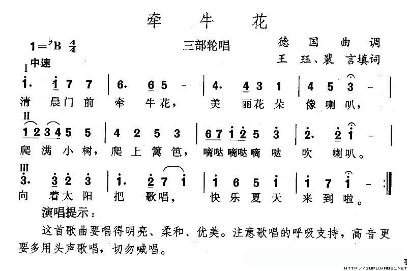 牵牛花(王珏填词版)的简谱歌词