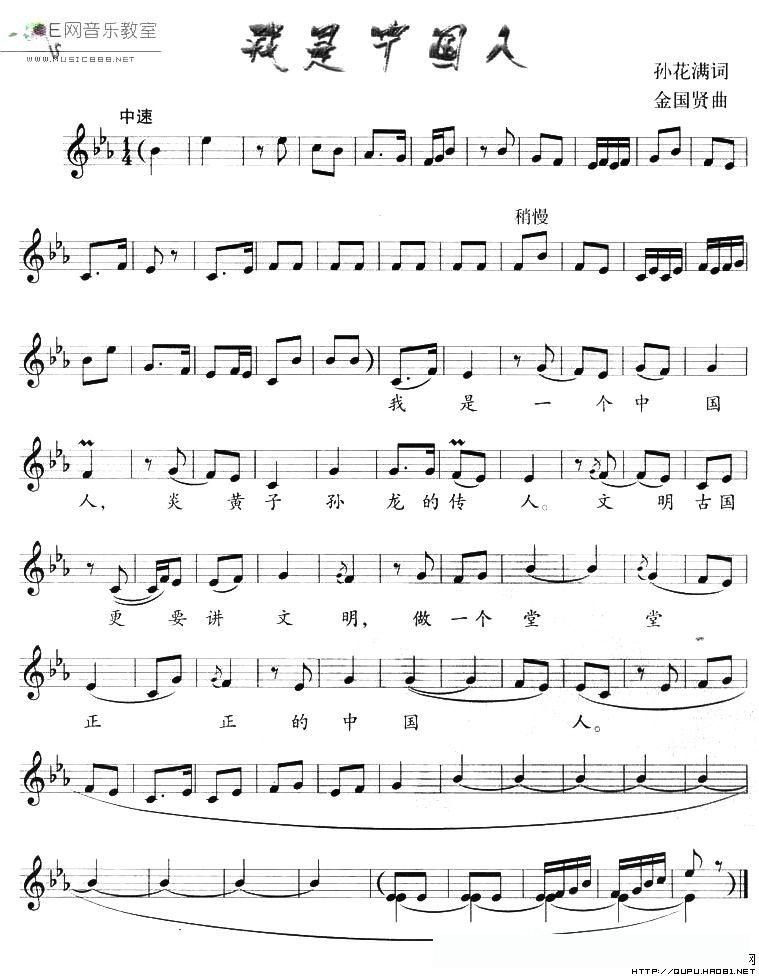 我是中国人(孙花满词 金国贤曲、五线谱)的简谱歌词