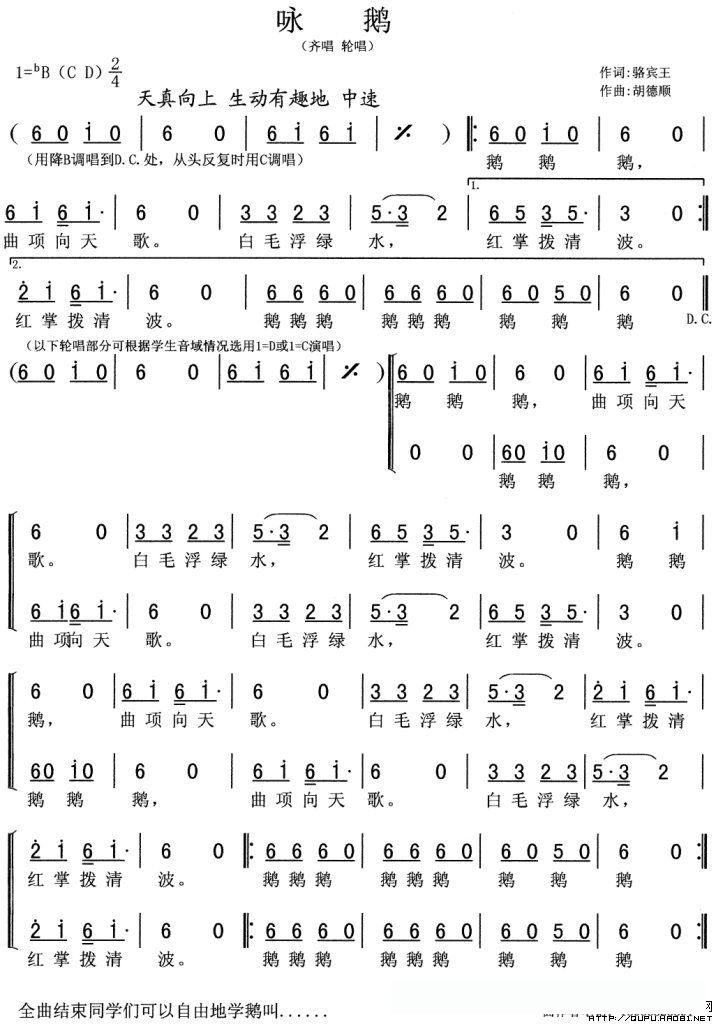 咏鹅([唐]骆宾王词 胡德顺曲)的简谱歌词