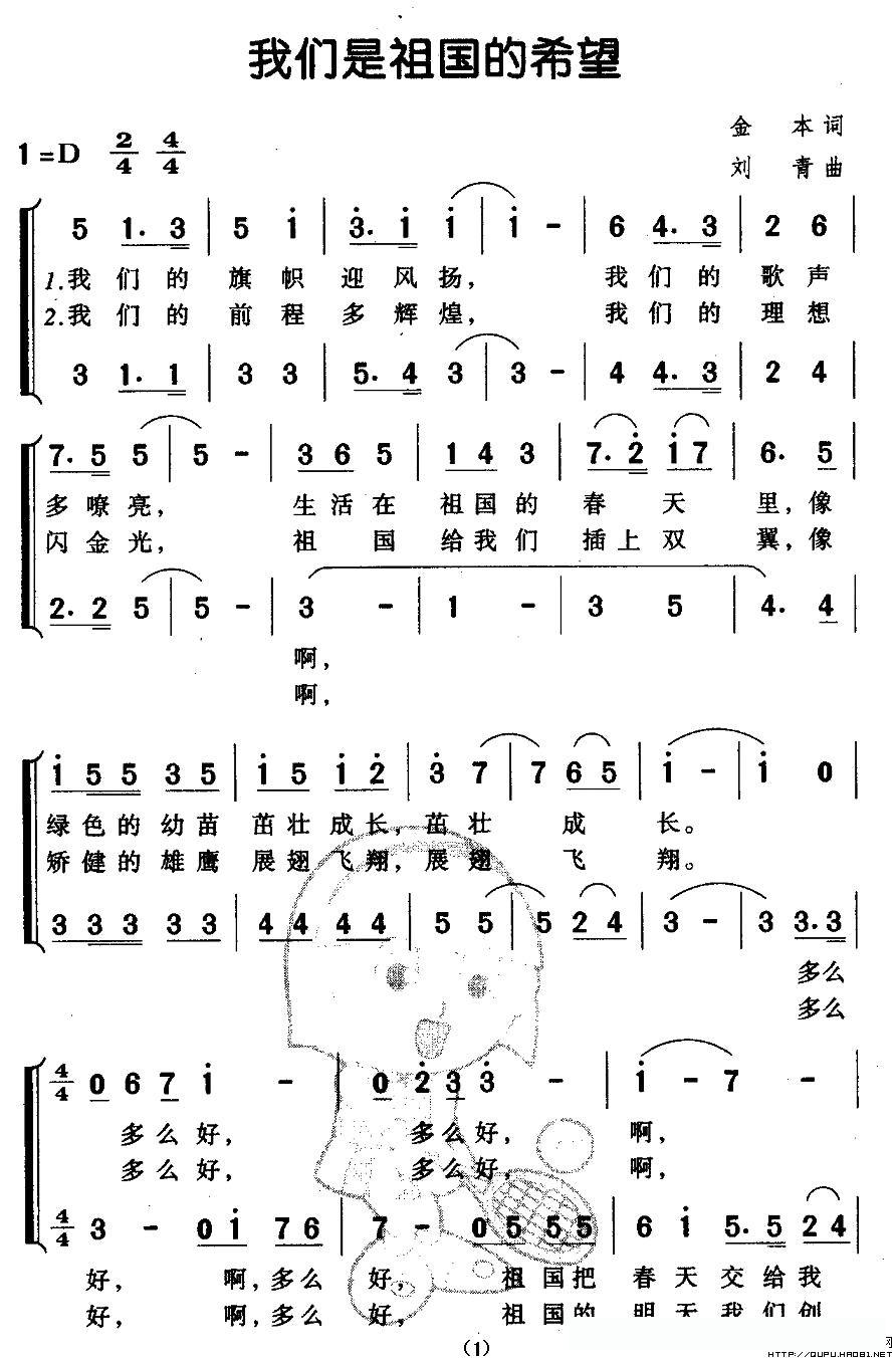 我们是祖国的希望(金本词 刘青曲、合唱)的简谱歌词我们是祖国的希望(金本词 刘青曲、合唱)的简谱歌词