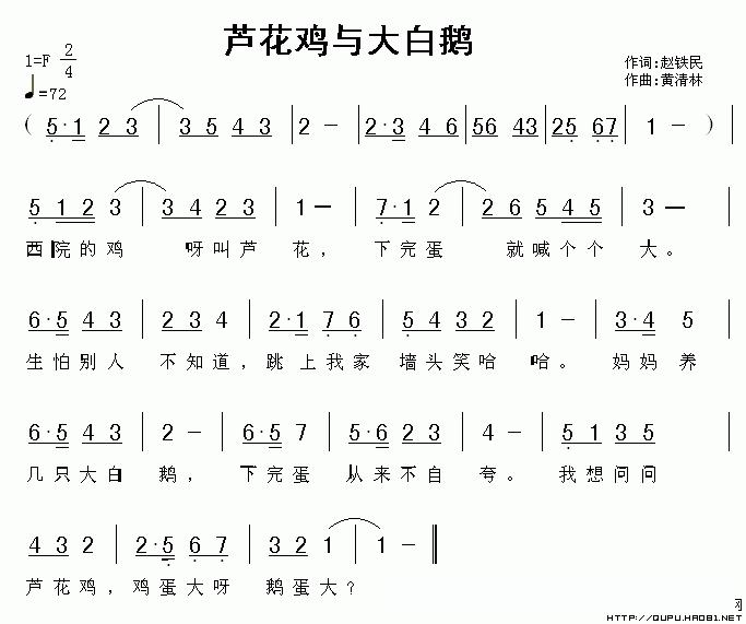西院小鸡叫芦花, 下完蛋就喊“个个大”。 生怕别人不知道, 跳上我家墙头笑哈哈。 妈妈养几只大白鹅, 下完蛋从来不自夸。 我想问问芦花鸡, 鸡蛋大呀还是鹅蛋大?