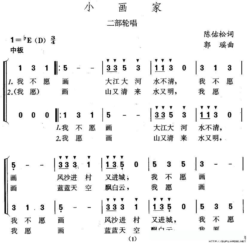 小画家(陈佑松词 郭瑶曲、二部轮唱)的简谱歌词小画家(陈佑松词 郭瑶曲、二部轮唱)的简谱歌词