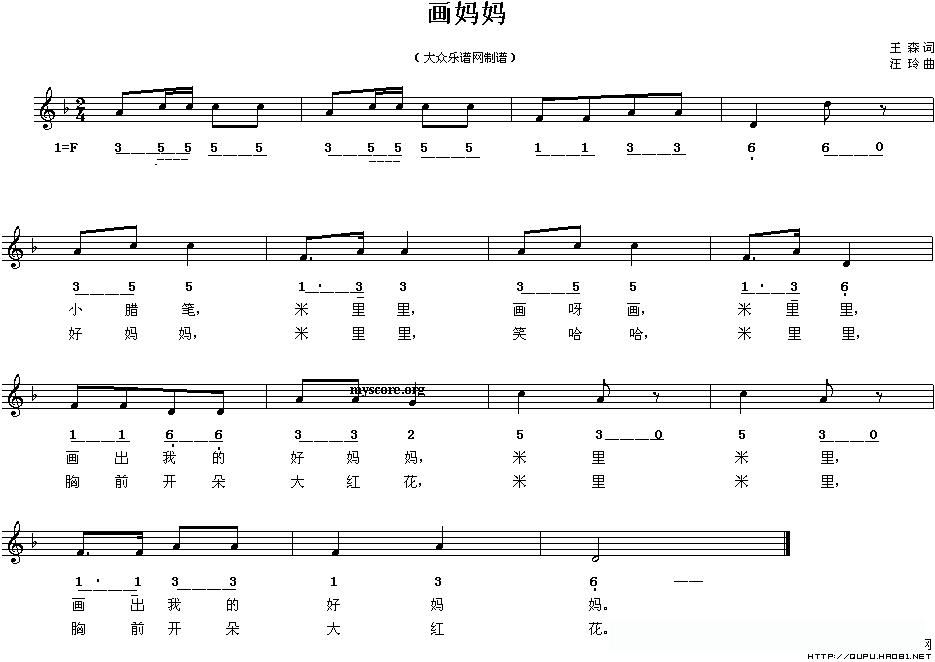 画妈妈(王森词 汪玲曲、线的简谱混排版)的简谱歌词
