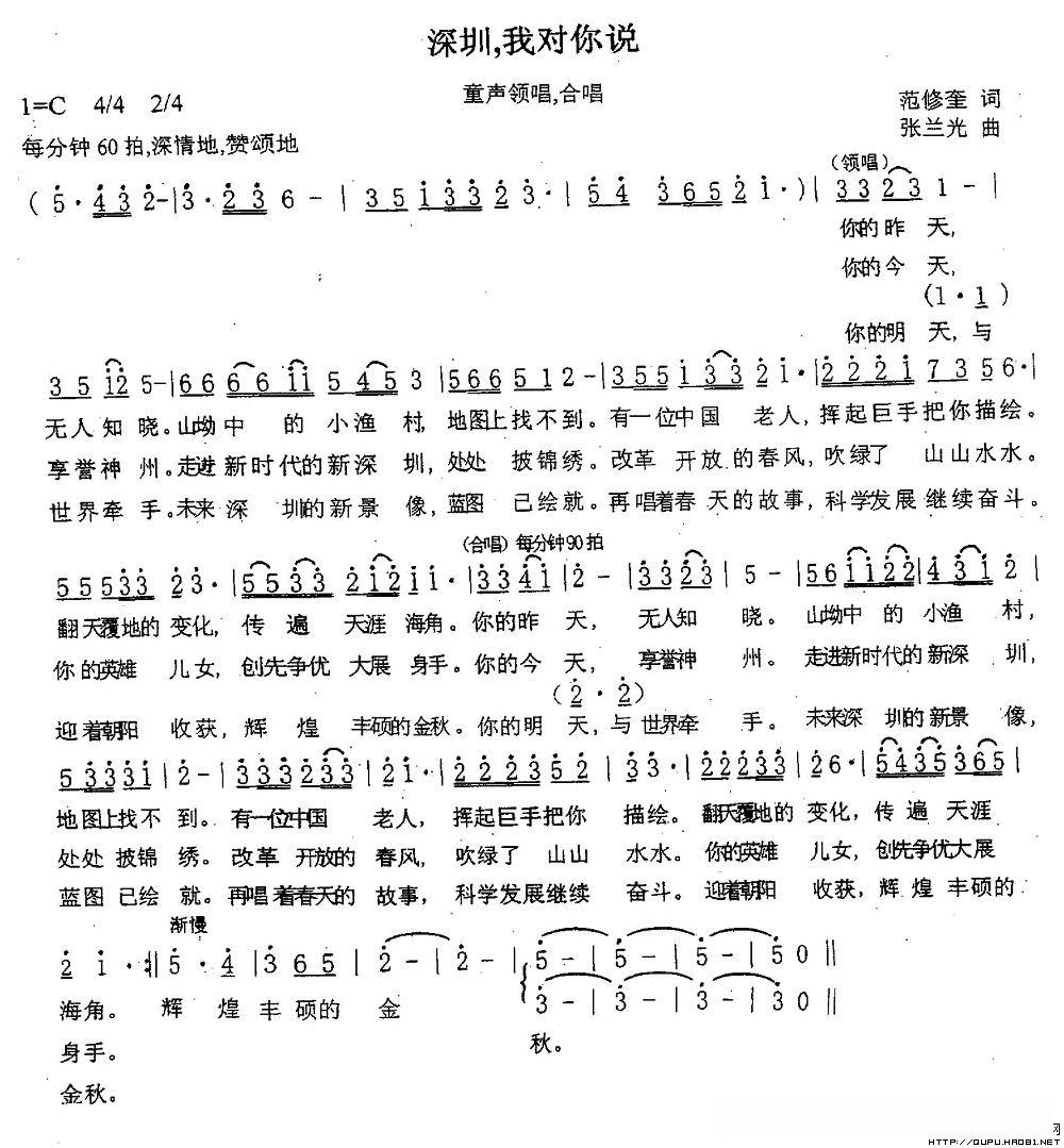 深圳,我对你说的简谱歌词
