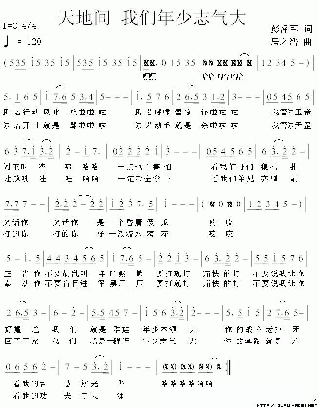 天地间 我们年少志气大的简谱歌词