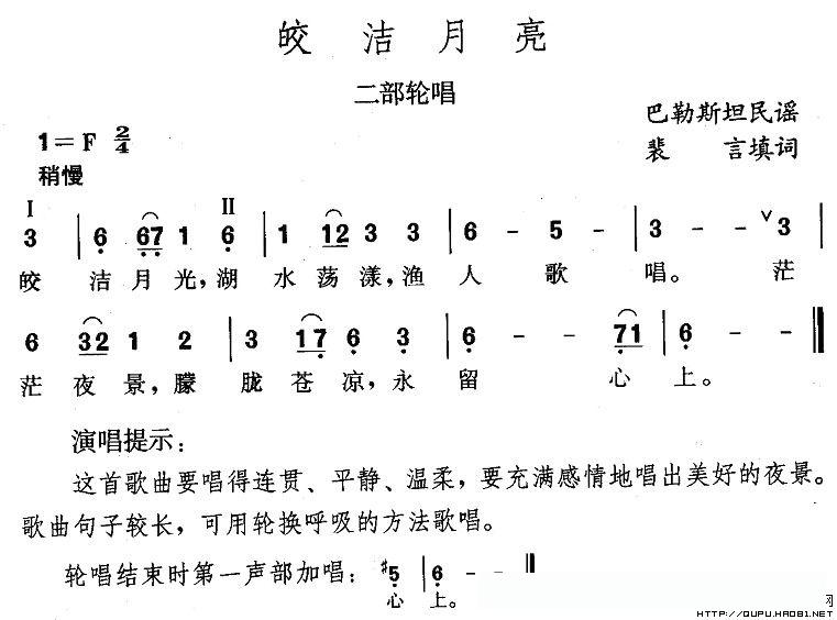 皎洁月亮(二部轮唱)的简谱歌词