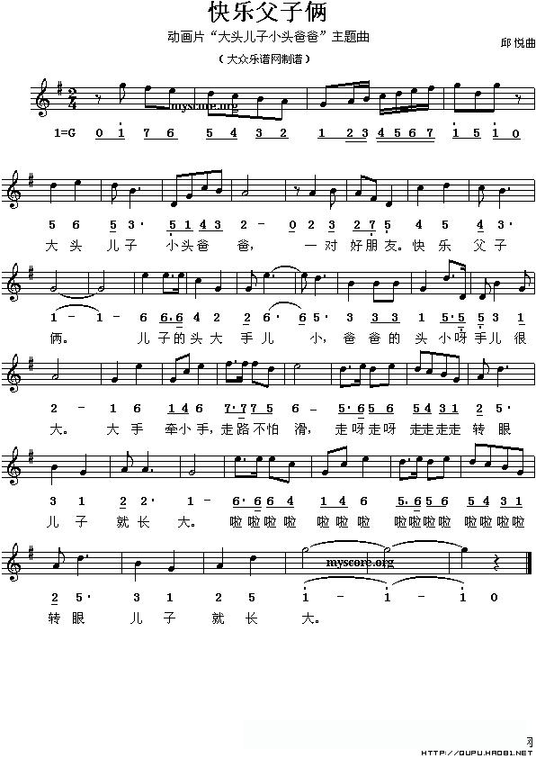 快乐父子俩(动画片《大头儿子小头爸爸》主题曲)(线的简谱混排版)的简谱歌词