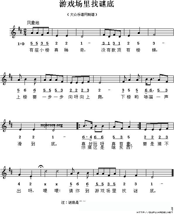 游戏场里找谜底(线、的简谱混排版)的简谱歌词