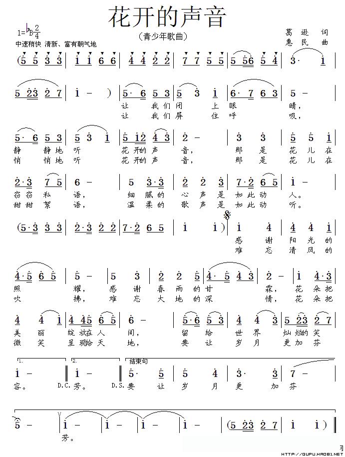 花开的声音(葛逊词 惠民曲)的简谱歌词