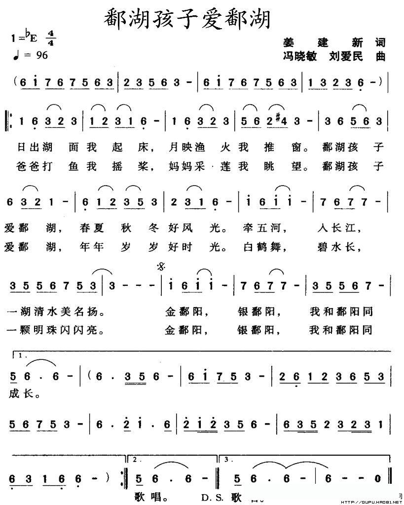 鄱湖孩子爱鄱湖的简谱歌词