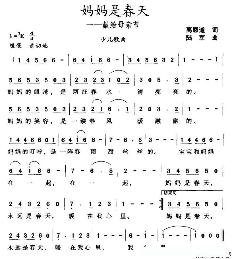 妈妈是春天——献给母亲节的简谱歌词