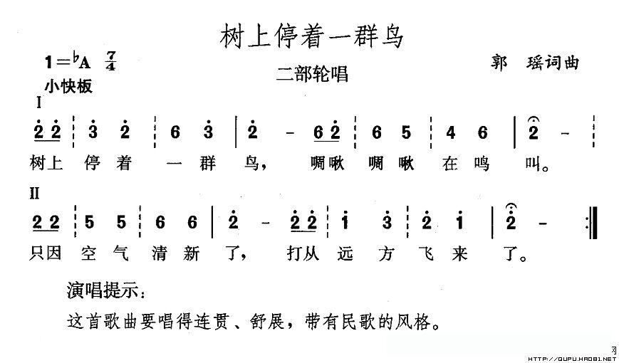 树上停着一群鸟的简谱歌词