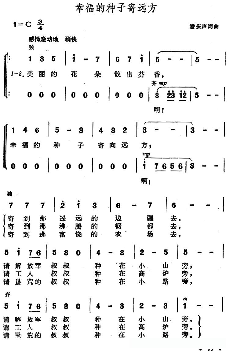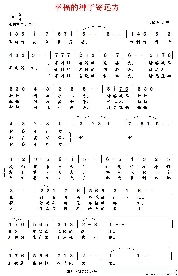 幸福的种子寄远方的简谱歌词幸福的种子寄远方的简谱歌词幸福的种子寄远方的简谱歌词