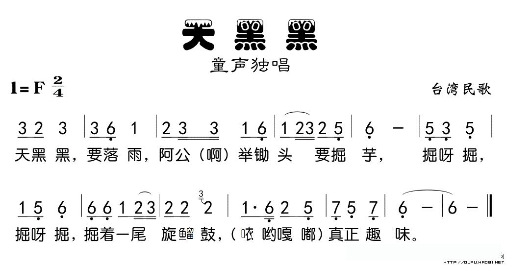 天黑黑(台湾童谣、版本二)的简谱歌词