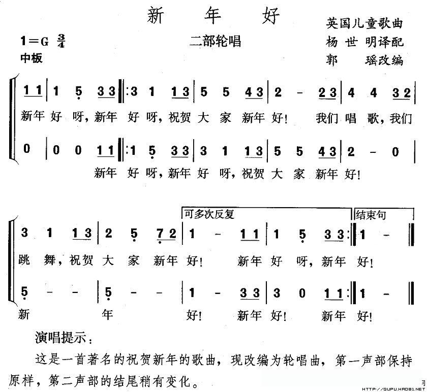 新年好(二部轮唱、郭瑶改编版)的简谱歌词
