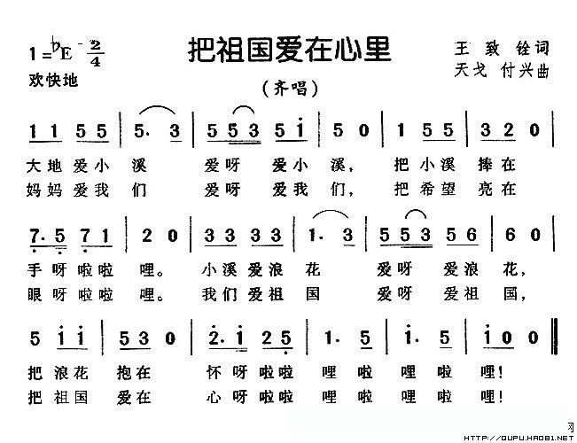 把祖国爱在心里的简谱歌词