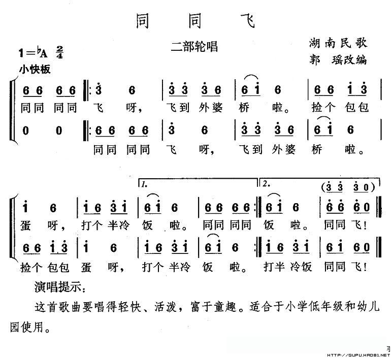 同同飞(二部轮唱)的简谱歌词