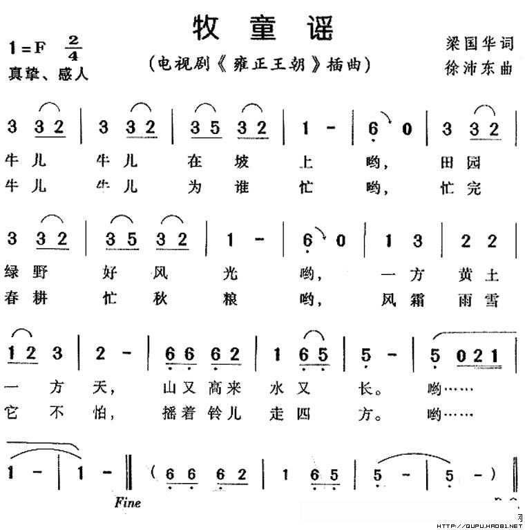 牧童谣(电视剧《雍正王朝》插曲)的简谱歌词