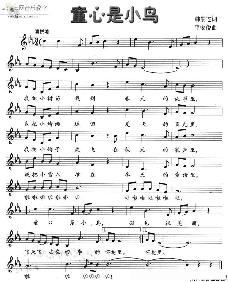 童心是小鸟(五线谱)的简谱歌词