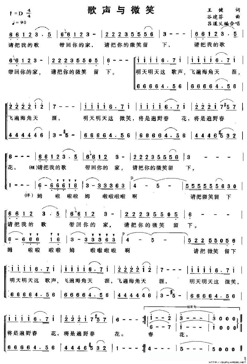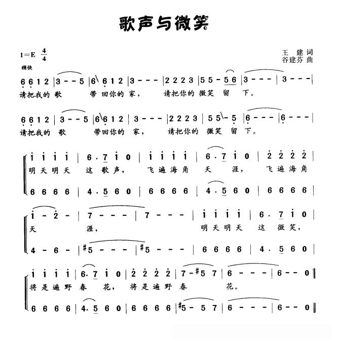 歌声与微笑(合唱)的简谱歌词歌声与微笑(合唱)的简谱歌词