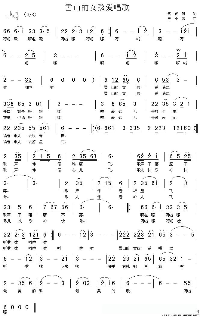 雪山的女孩爱唱歌(代伐钟词 王小云曲)的简谱歌词