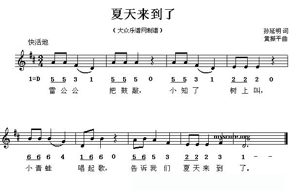 夏天来到了(线、的简谱混排版)的简谱歌词
