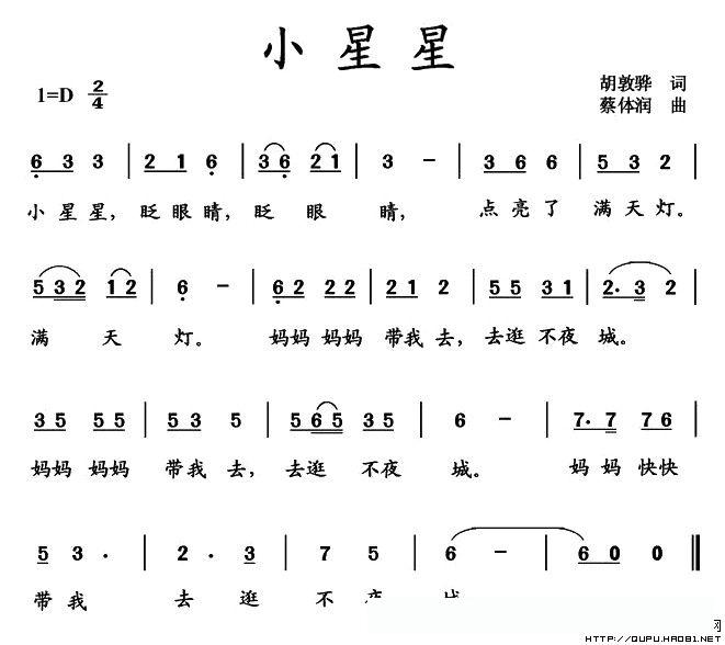 小星星(胡敦骅词 蔡体润曲)的简谱歌词