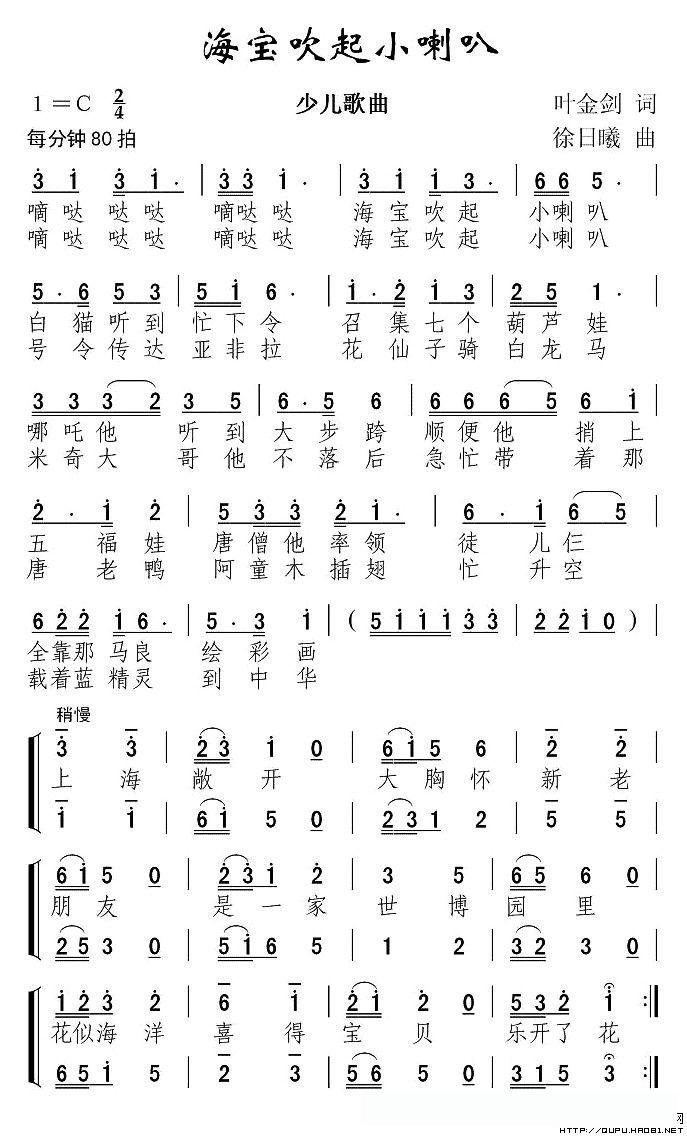 海宝吹起小喇叭的简谱歌词