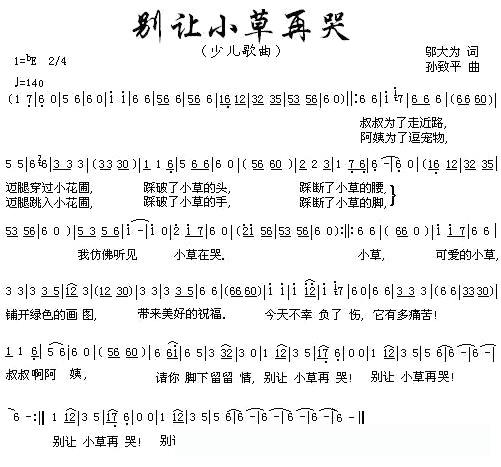 别让小草再哭的简谱歌词