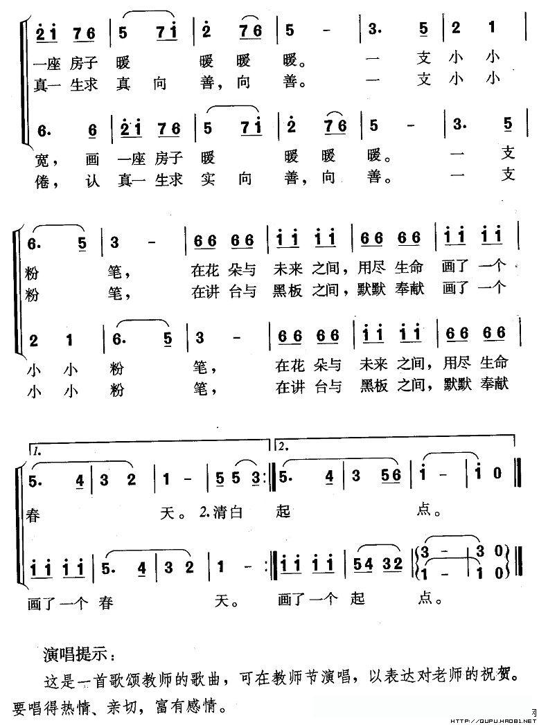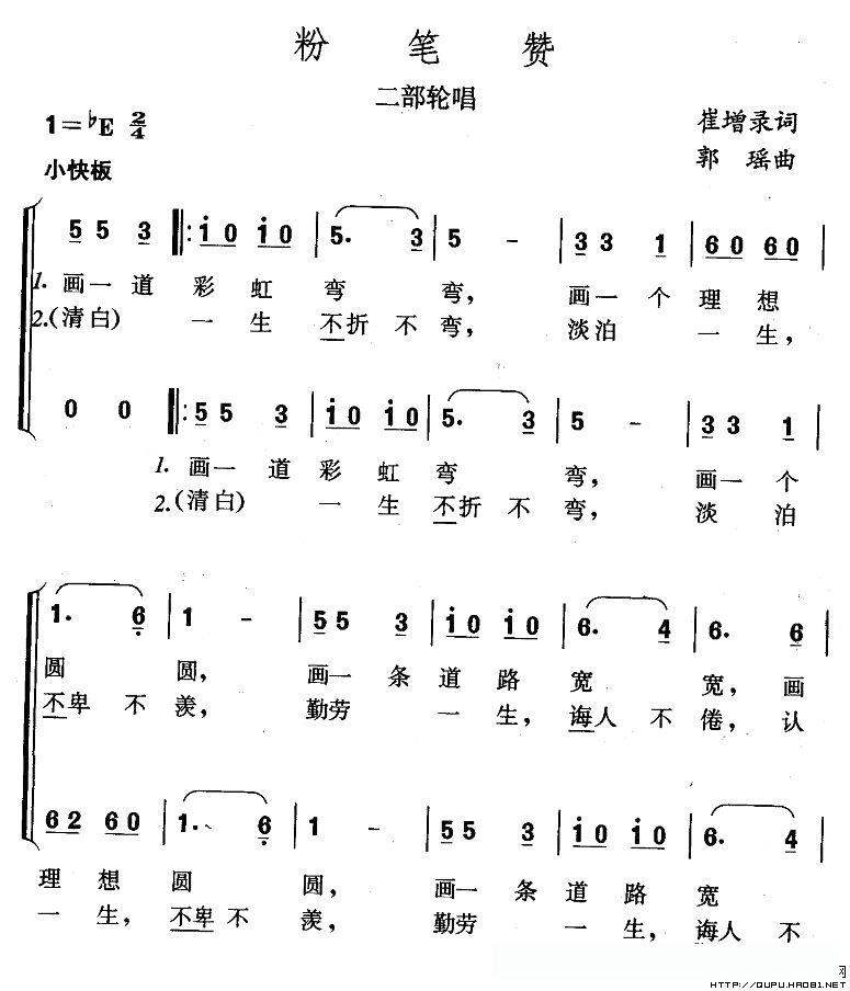 粉笔赞(二部轮唱)的简谱歌词粉笔赞(二部轮唱)的简谱歌词